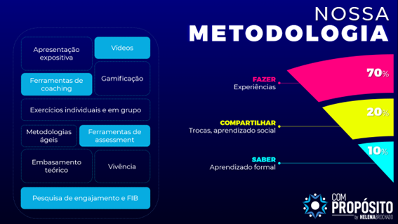 A Com Propósito entra aí, como parceiro do negócio! O nosso propósito é “Desenvolver pessoas e negócios através de experiencias transformadoras”. Quando recebemos a demanda, pensamos no projeto de forma sistêmica atendendo os diversos públicos para gerar a transformação e começamos a curadoria de conteúdo, buscando o que há de melhor e mais atual.